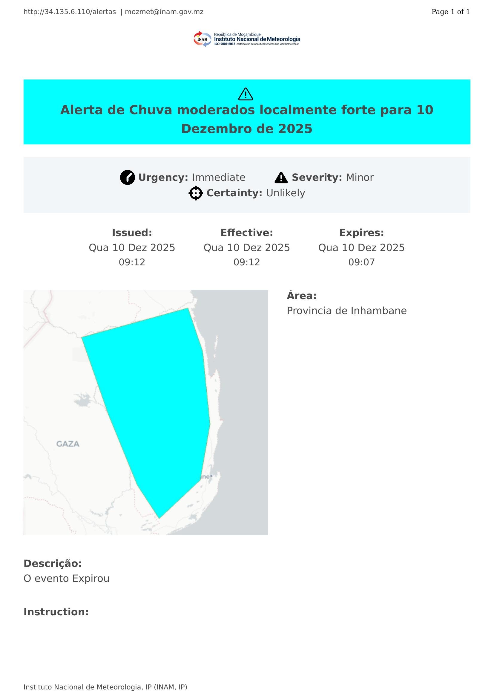 Alerta de Chuva moderados localmente forte para 10 Dezembro de 2025