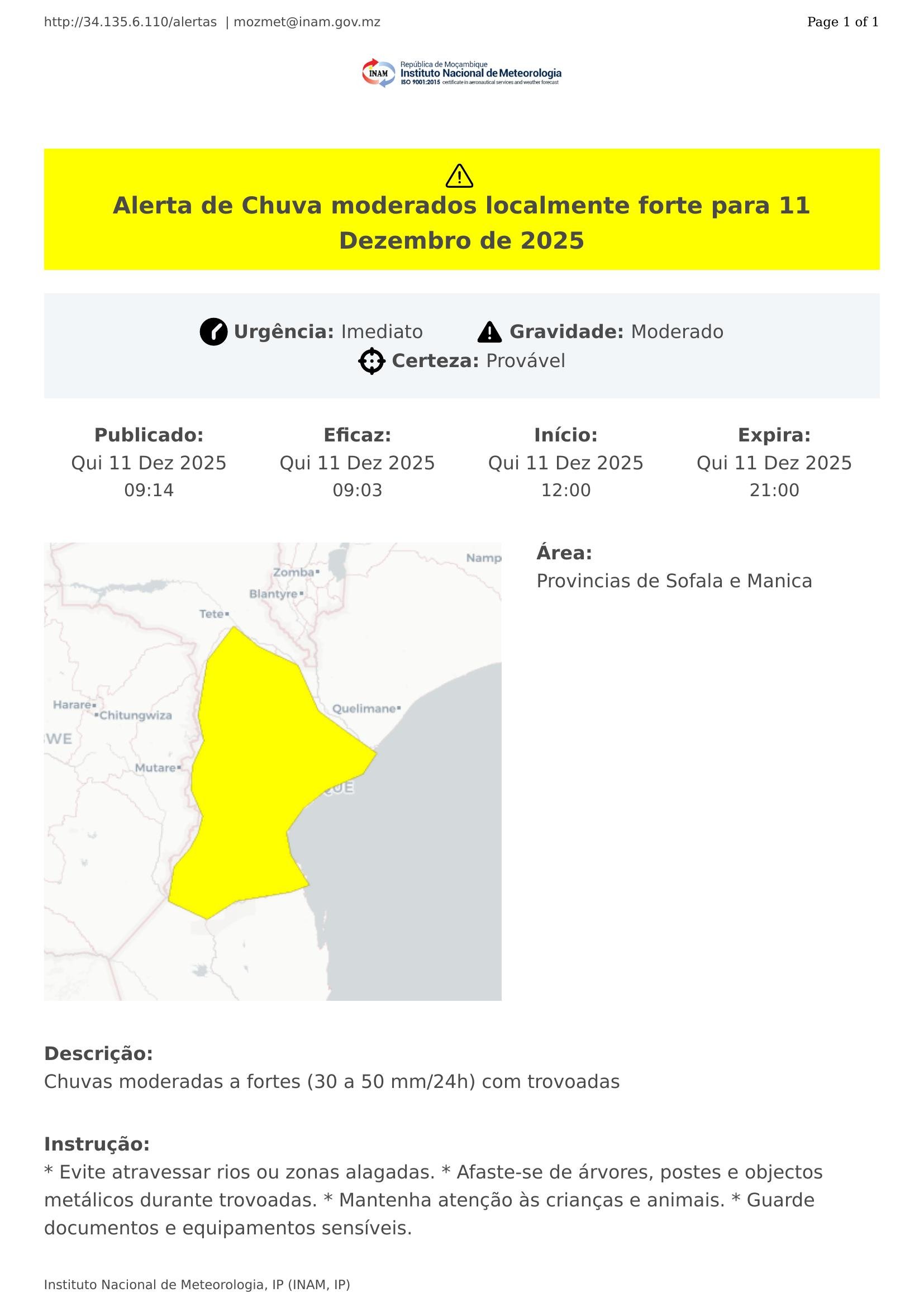 Alerta de Chuva moderados localmente forte para 11 Dezembro de 2025